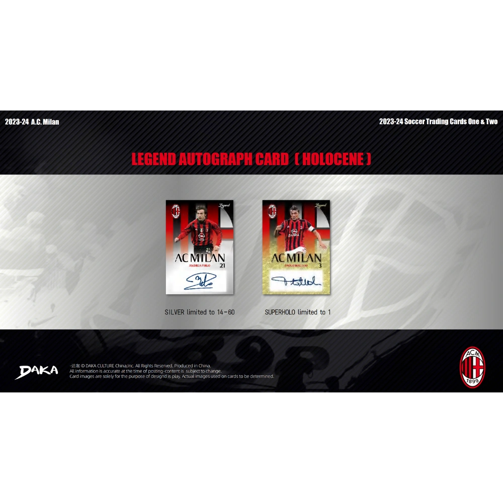 Erlebe mit der brandneuen 2023-24 DAKA AC Milan Team Box die Faszination des italienischen Spitzenfußballs. Diese exklusive Sammelbox ist ein Muss für jeden AC-Milan-Fan und leidenschaftlichen Karten-Sammler. Freue dich auf hochwertige Trading Cards mit den aktuellen Stars wie Tomori und Leão sowie legendären Ikonen wie Baggio, Baresi und Pirlo – teils sogar mit Original-Autogrammen!