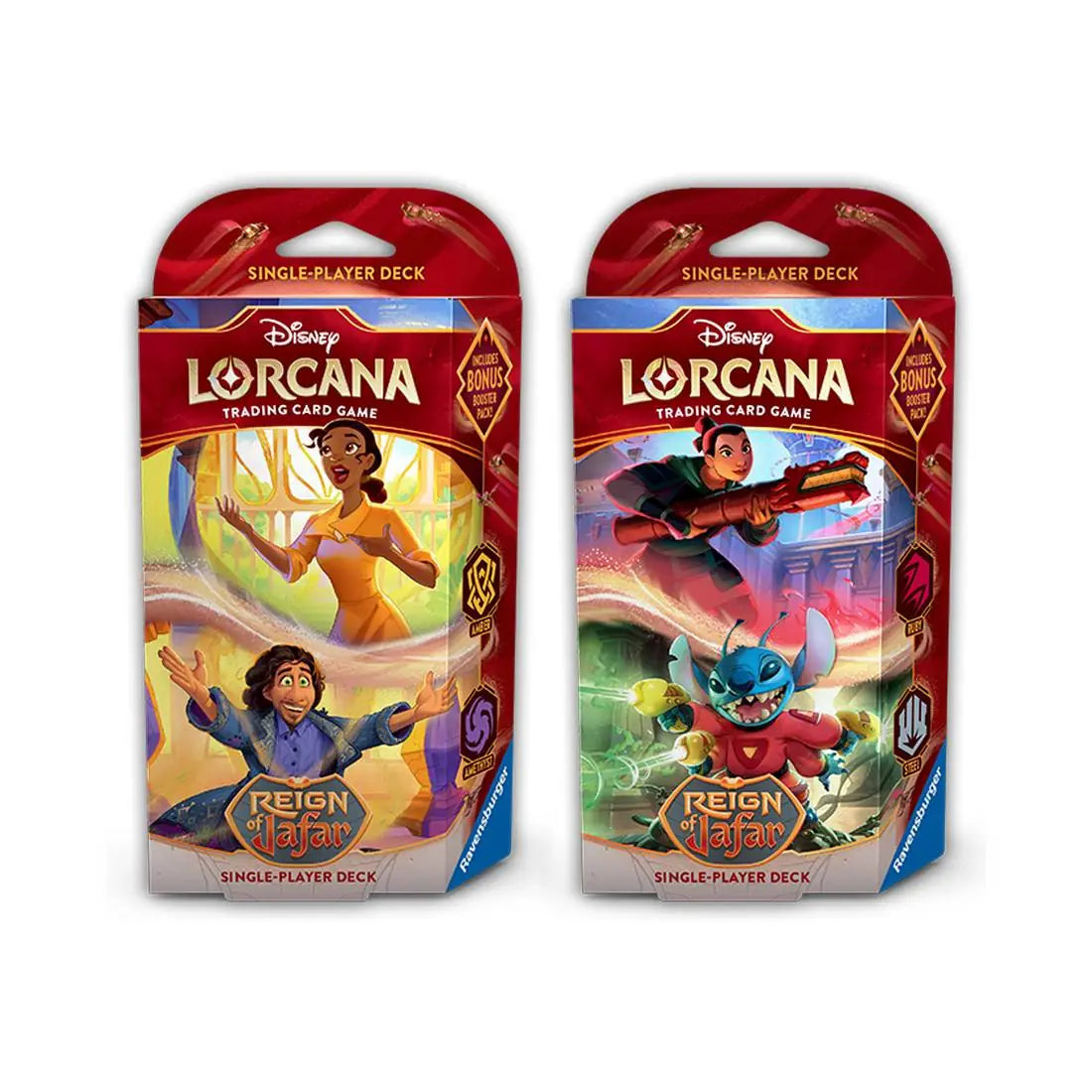 Um Disney Lorcana zu spielen, benötigen alle Mitspielenden ein Deck mit sechzig Karten. Starter Decks enthalten ein vorgefertigtes Deck mit einem festgelegten Kartensatz. Wenn du noch nicht damit vertraut bist, dein eigenes Deck zu bauen, ist das ausgewogene und vom Lorcana Team getestete Starter Deck die ideale Basis.